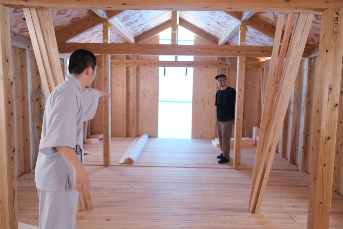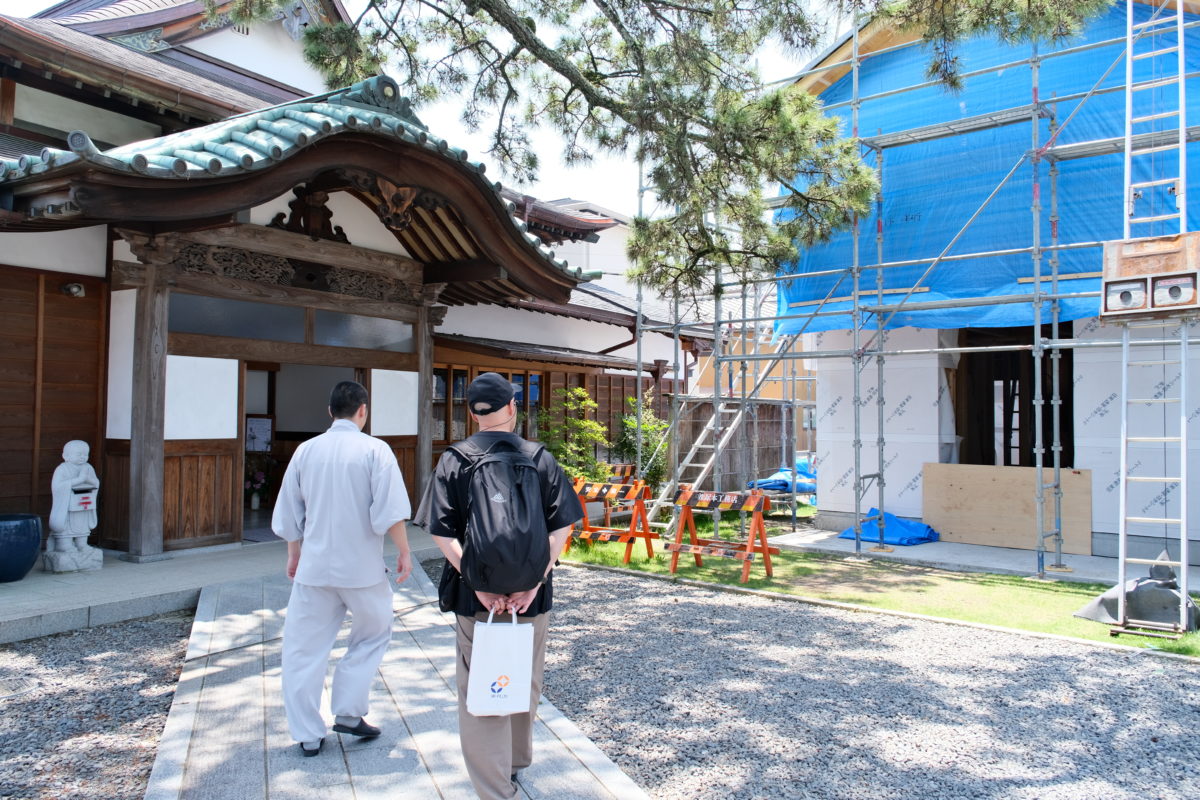 大場さんに案内されたのは、本堂向かって右手前にて建築中の一棟の建物です。