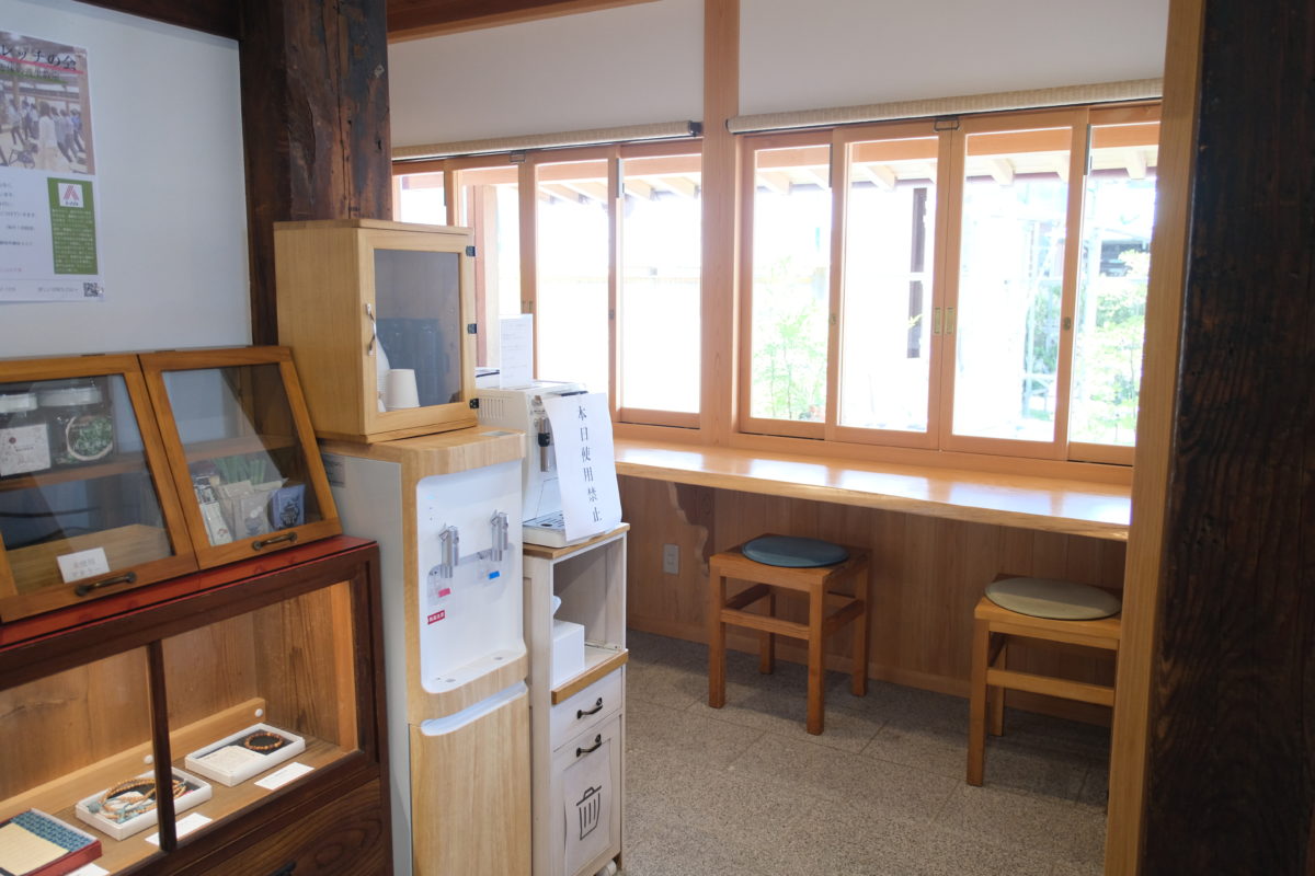 そして、本堂入ってすぐ横には「靴のまま入れる休憩所」があり、セルフ式の「賽銭喫茶」となっています。