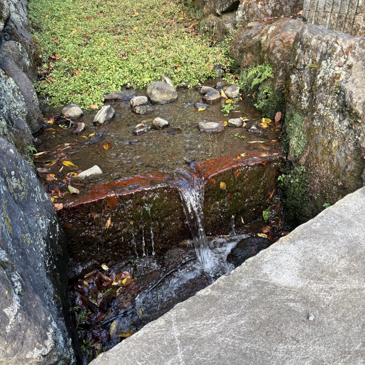 “潺々(せんせん)と”という表現は日常的にあまり使いませんが、その小川のせせらぎに耳を澄ましていると、その表現のこころがわかるような気持ちになってきます。